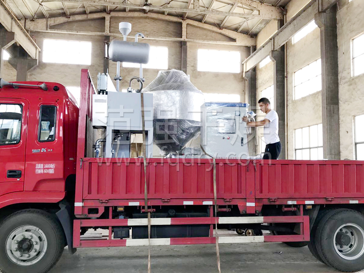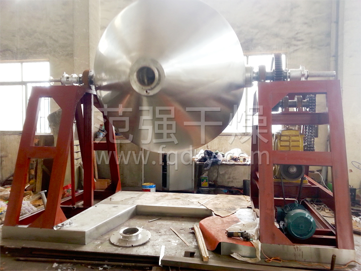◎雙錐回轉真空干燥機在密閉的夾層中通入熱能源(如熱水,低壓蒸汽或導熱油),熱量經(jīng)內殼傳給被干燥物料。