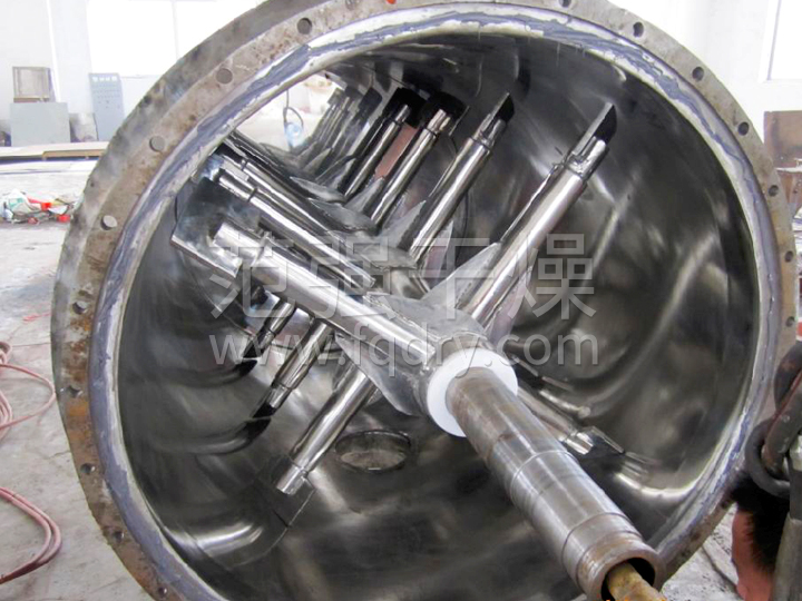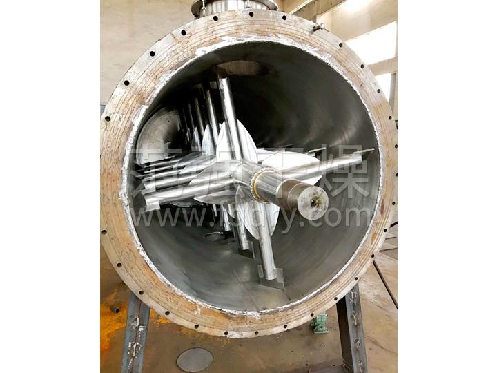 真空耙式干燥機設置攪拌,使物料在筒內形成連續循環(huán)狀態(tài),進(jìn)一步提高了物料受熱的均勻度。