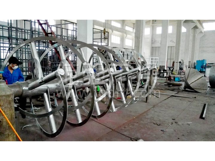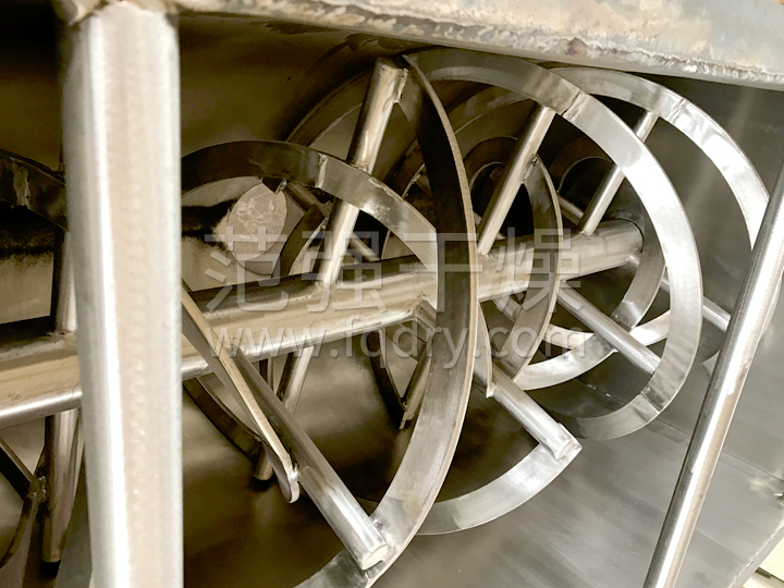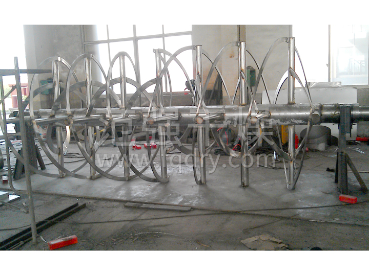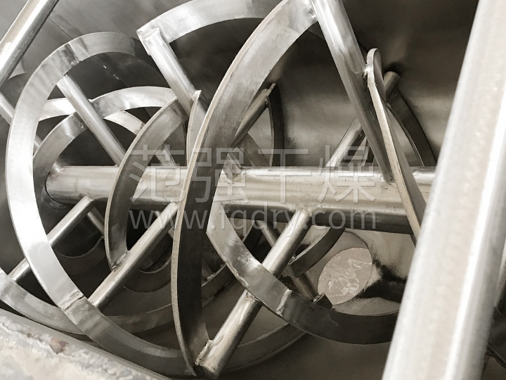 WLDH系列臥式螺帶混合機由容器、螺旋攪拌葉片和傳動(dòng)部件組成:螺旋葉片一般做成雙層或三層,外層螺旋將物料從兩側向中央匯集,內層螺旋將物料從中央兩側輸送,形成對流混合。